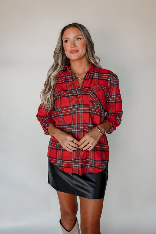 THE CHRISTMAS PLAID BUTTON UP | RED