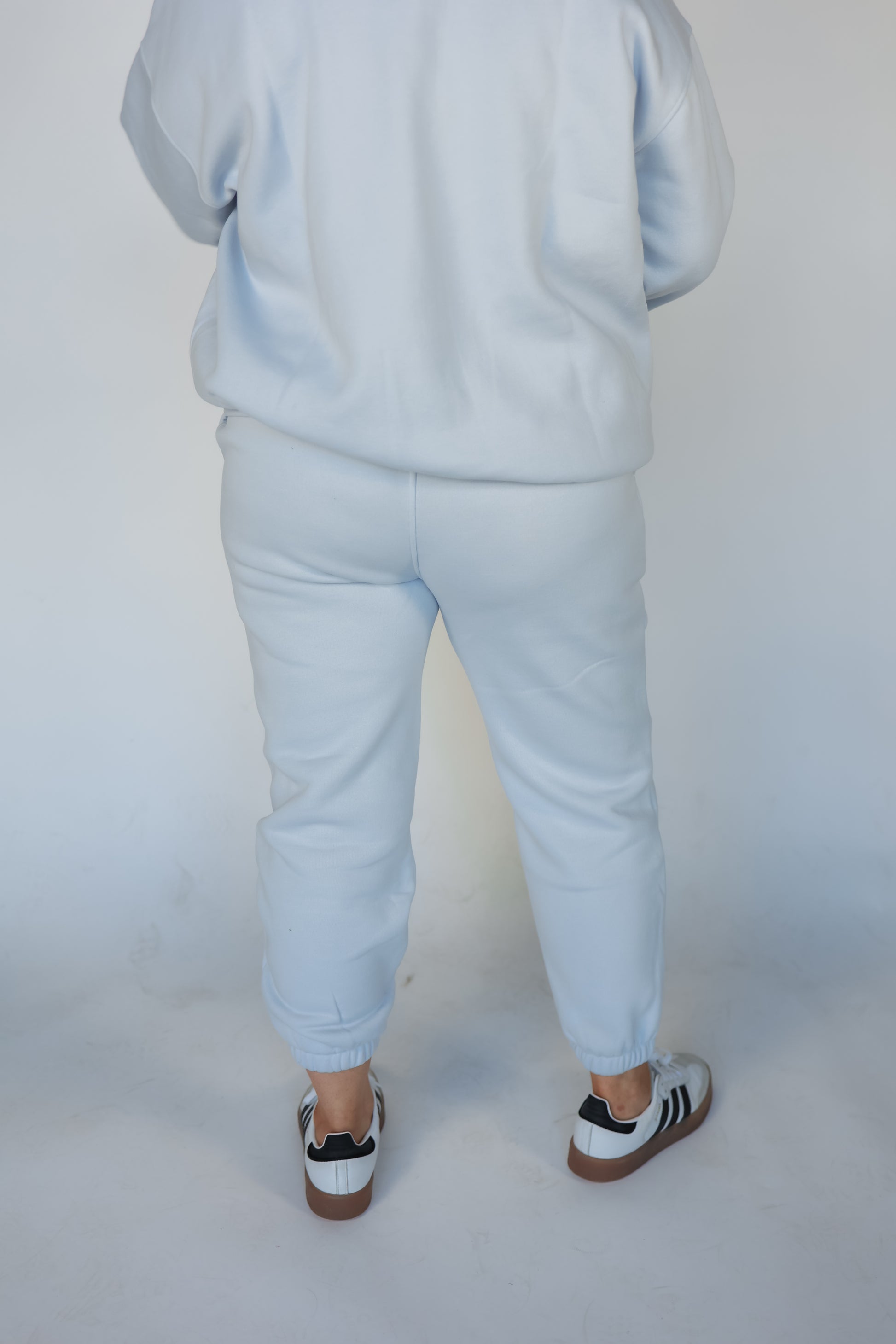 The Cloud Blue Sweatpants redefine comfort without sacrificing style. Crafted in that same serene cloud blue, these sweatpants become your go-to for everything from work-from-home days to weekend lounging. The relaxed fit moves with you while maintaining a polished appearance that works beyond the bedroom. Pair them with the matching sweatshirt for a coordinated set, or mix and match with your favorite tops for endless styling possibilities.