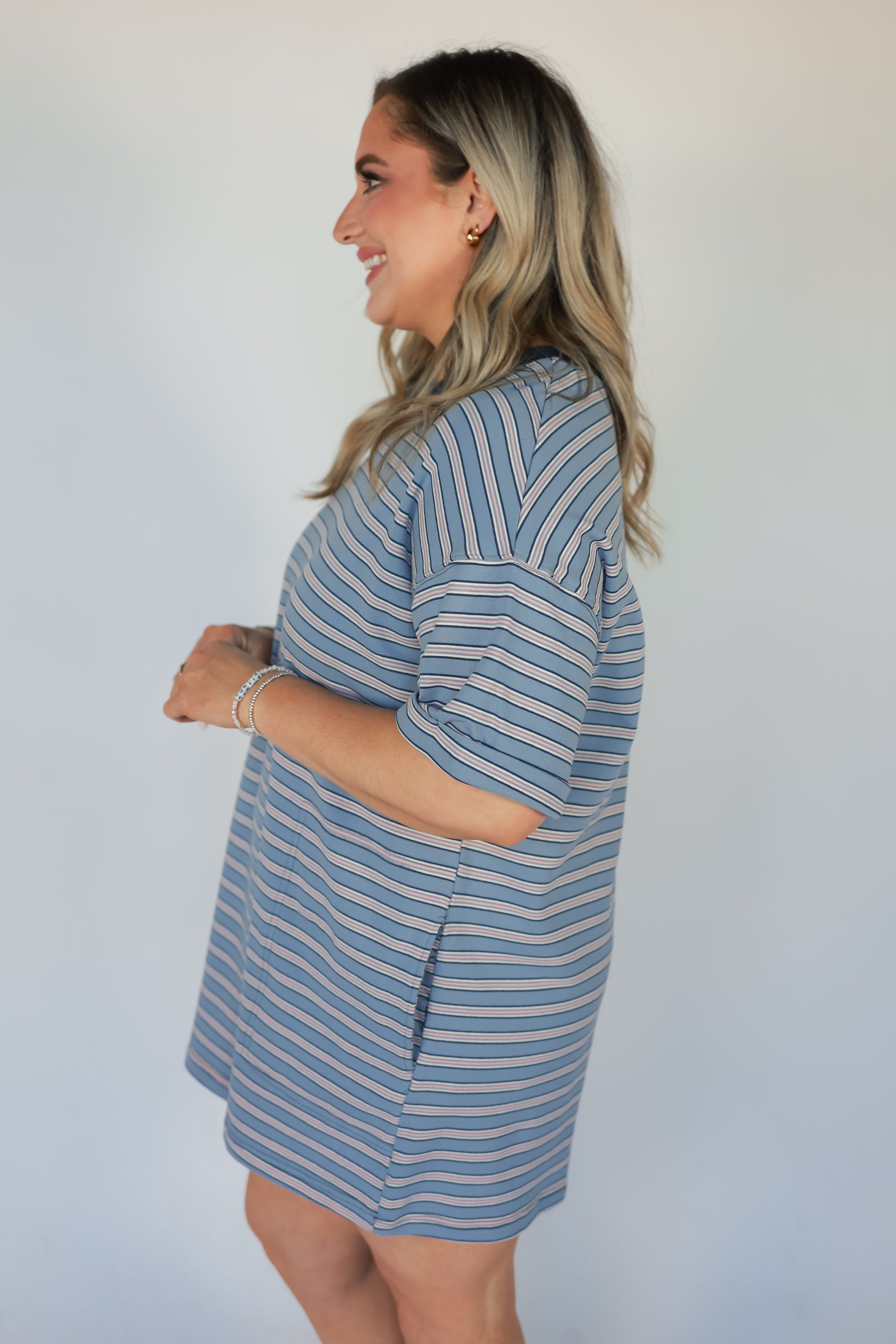 The Easy Stripe Dress in Blue is your go-to piece for effortless elegance. This timeless striped design transitions seamlessly from day to night, offering versatility that works harder than your average dress. The classic blue palette pairs beautifully with everything in your closet, making it a wardrobe essential that simplifies getting dressed. Comfortable enough for all-day wear yet polished enough for any occasion, this dress proves that simple style never goes out of fashion.