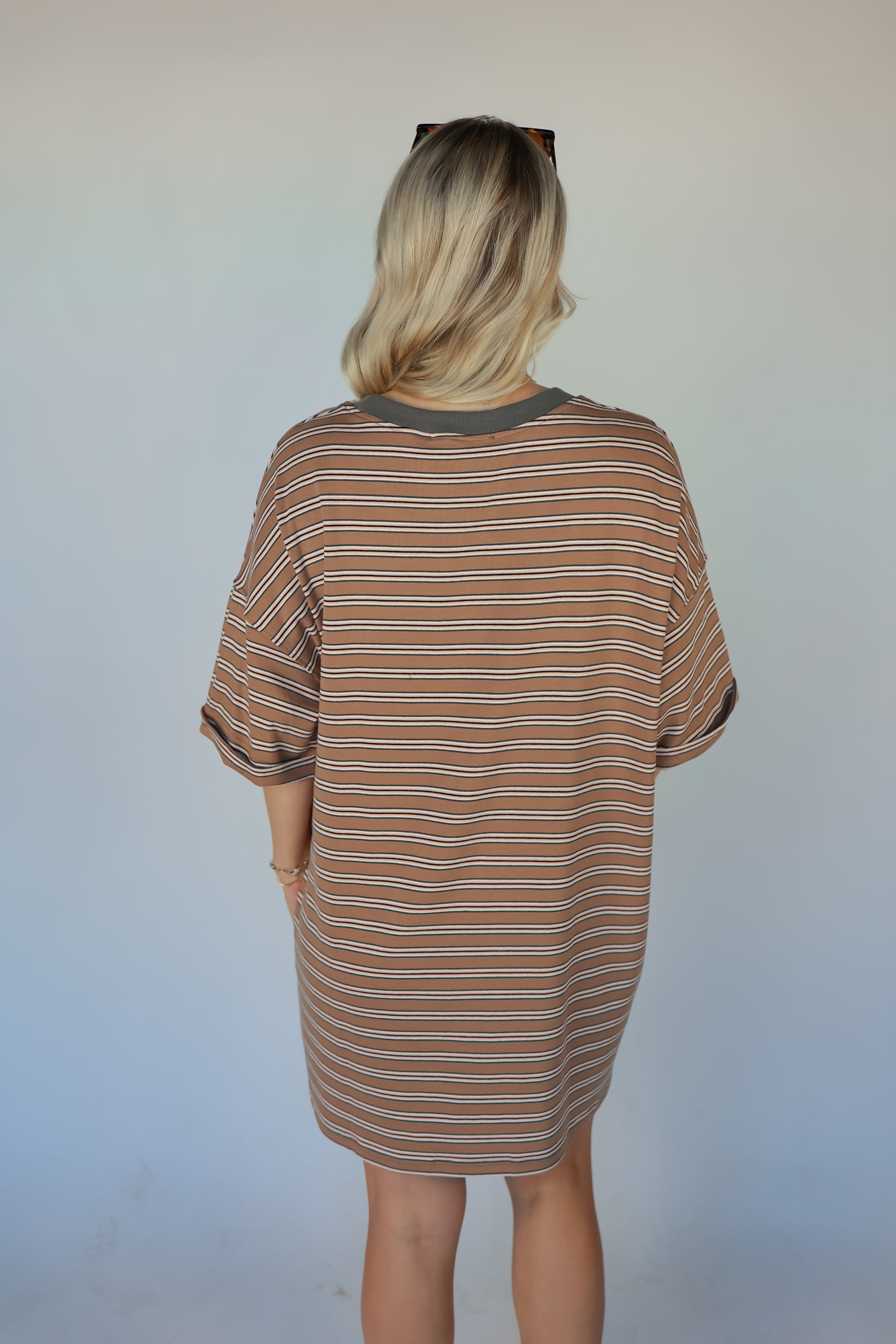 The Easy Stripe Dress in Brown offers understated sophistication for the modern wardrobe. This versatile striped silhouette works beautifully across seasons, pairing effortlessly with sneakers, sandals, or heels depending on your mood. The warm brown tone flatters every complexion and coordinates seamlessly with your existing pieces, making it an invaluable layering foundation. Designed for comfort without sacrificing style, this dress moves with you through busy days and relaxed evenings alike.
